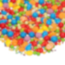 Suiker, rijstmeel, glucosestroop, dextrose, gedeeltelijk geharde olie (raapzaad), plantaardige olie (kokos, raapzaad), verdikkingsmiddel: E413, kleurstoffen: E100, E120, E132, E133, E160a, E171, E172, spirulinaconcentraat, zout, voedingszuur: E330, glansmiddelen: E901, E903, E904.