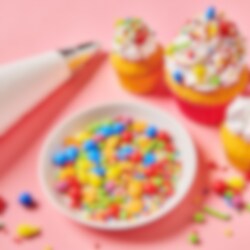 Vier in stijl met deze kleurrijke verjaardagsmix! Een vrolijke combinatie van rode, gele, blauwe en groene decoraties – met kleine cupcakes en ballonnen – geeft je gebak een speelse en feestelijke uitstraling. Perfect voor verjaardagen, kinderfeestjes en andere blije momenten.