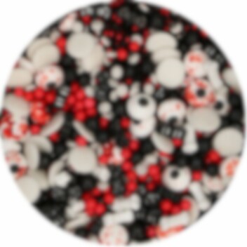 Geef je baksels een griezelige Halloween-look met dit strooisel van FunCakes. De mix bevat bloedrode parels, botjes, vleermuizen en enge 3D-ogen die cupcakes, taarten en desserts zowel leuk als spannend maken. Perfect voor Halloweenfeestjes!