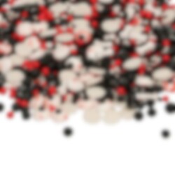 Ingrediënten: suiker, dextrose, zetmeel (maïs, tarwe), glucosestroop, plantaardige olie (palm, kokos), meel (tarwe, rijst), maltodextrine, stabilisator: E414, emulgator: E471, kleurstoffen: E100, E120, E132, E153, E160a, E172, E174, E322, E555, glansmiddel: E904, aroma’s. Kan sporen bevatten van: melk, soja, noten, pinda’s, sesamzaad, lupine.