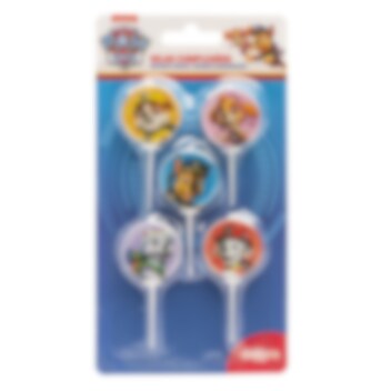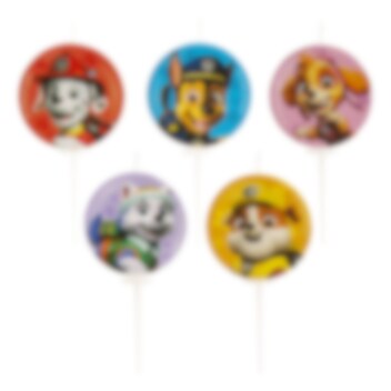 5 taartkaarsjes met schattige afbeeldingen van Chase, Marshall, Rubble, Skye en Everest uit de tv-serie Paw Patrol. Versier taarten of gebakjes met deze kaarsjes voor een feestelijke uitstraling op een Paw Patrol-kinderfeestje.