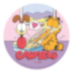 Maak van de taart een feestelijke blikvanger met deze grappige eetbare taartprint van Garfield! De beroemde, lasagne-liefhebbende kat smult van een heerlijke spaghetti-maaltijd – perfect voor een verjaardagsfeest vol humor en plezier.