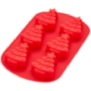 Met deze siliconenvorm kun je 6 schattige kleine kerstbomen bakken. Omdat de vorm van siliconen is gemaakt, is het supergemakkelijk om de gebakjes eruit te halen en ook om hem na gebruik schoon te maken. De vorm is 17 x 26 cm en elke kerstboom is ongeveer 6,5 x 8 cm groot.