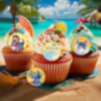 20 eetbare cupcake decoraties van fondant met schattige afbeeldingen van Lilo & Stitch. De decoraties worden leuke decoraties op cupcakes of de verjaardagstaart. De decoraties hebben een diameter van ongeveer 3,4 cm en zijn klaar om direct op de muffins te worden geplaatst. De beelden worden droog en koel bewaard en zijn ruim een jaar houdbaar.