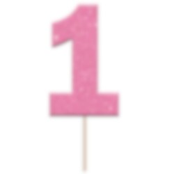 12 stuks prikkers met motieven van roze glinsterende cijfers 1. Perfect om de taart of muffins mee te versieren als het tijd is voor een 1 jaar verjaardagsfeestje. De prikkers zijn ongeveer 9,5 cm lang.