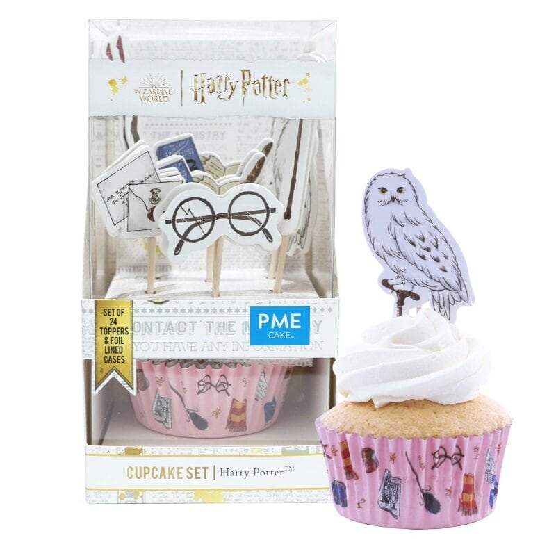 Muffinset van de fabrikant PME in een prachtig Harry Potter-thema dat 24 muffinvormpjes en 24 cake toppers bevat. De muffinvormpjes zijn gemaakt van hoogwaardig papier en hebben aan de binnenkant een metalen folie om ervoor te zorgen dat er geen vet doorheen sijpelt. Dus als je een Harry Potter kinderfeestje gaat organiseren, dan zijn deze perfect om wat extra Hogwarts magie toe te voegen.