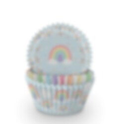 75 stuks stijlvolle muffinvormpjes in pastelkleuren met motieven van fijne regenbogen. De muffinvormpjes zijn ongeveer 5 cm in bodem diameter.