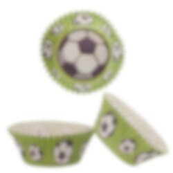 25 muffinvormpjes in een mooie groene kleur met een leuk afbeelding van voetballen. Bak heerlijke muffins en serveer ze in deze leuke vormpjes voor het feest of voetbalfeest. De muffinvormpjes hebben een bodemdiameter van 5 cm. We raden aan om ze samen met een muffinbakvorm te gebruiken.