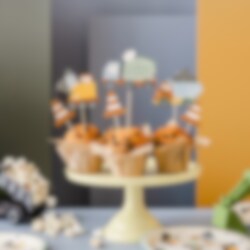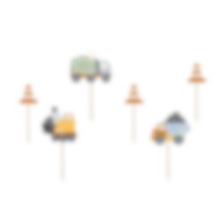 Versier je gebakken producten met deze dubbelzijdige taarttoppers met verschillende coole voertuigen en accessoires. Elke decoratie is tussen de 4-7 cm groot en gemaakt van karton. De decoraties zijn gemonteerd op een stevige houten stok en zijn gemakkelijk in de taart of het gebak te doen. Deze cake toppers zijn perfect om je taart of gebak persoonlijker en leuker te maken. Beschrijving staat op de achterkant.