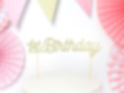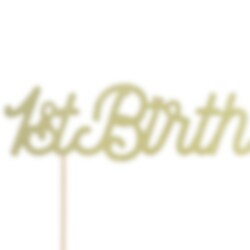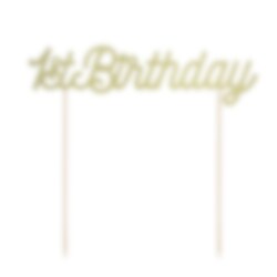 Zeer mooie taartdecoratie met motief van de tekst "1st Birthday" in goud glinsterende kleur. Versier de taart hiermee om een leuk effect te creëren als het tijd is voor het 1e verjaardagsfeestje. De decoratie is ongeveer 20 x 20 cm groot.