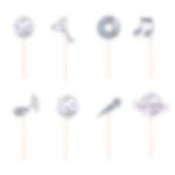Geef je gebak een feestelijke finishing touch met deze disco cake toppers. De set bevat acht verschillende designs, zoals een discobal, microfoon, muzieknoten en de tekst "Let’s Dance", allemaal met een fonkelend holografisch effect.