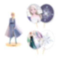 Vier met Frozen en tover je taart om met deze magische taartdecoratiekit! De kit bevat 2 feestprikkers en een 7,5 cm hoge Elsa-figuur, perfect om een betoverende taart te creëren.