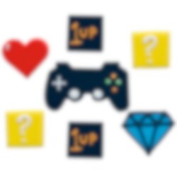 Set van 7 kleurrijke suikerdecoraties met coole videogame-afbeeldingen. Perfect om taarten, cupcakes of andere traktaties een speels en feestelijk tintje te geven.
