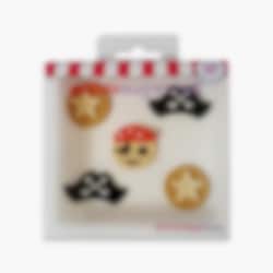 5 stuks suikerdecoraties met verschillende piraten motieven. Coole om de gebakjes of taart mee te versieren voor het piraten kinderfeestje.