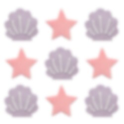 9 stuks suikerdecoraties met sterren en schelpen in pastelpaars en pastelroze. Versier de taart of je cupcakes hiermee om het extra leuk te maken.