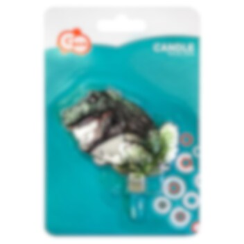 Stoere taart kaars in de vorm van een T-Rex met leuke metallic details om op je taart te zetten. De taart kaars is ongeveer 9 x 8 cm groot.
