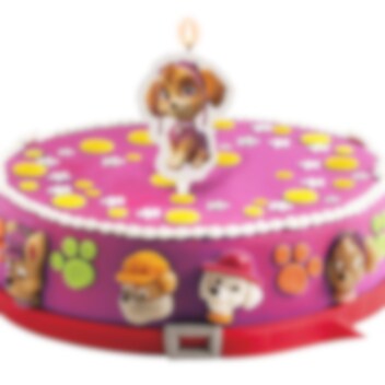 Mooie taartkaars met een afbeelding van Skye uit Paw Patrol. Perfect om de verjaardagstaart mee te versieren voor een kinderfeestje. De kaars is ongeveer 7,5 cm hoog en 5,5 cm breed.