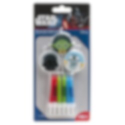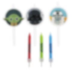Verlicht je Star Wars themafeest met deze taart kaarsen! De verpakking bevat 15 kaarsen met motieven uit de iconische filmserie. 3 van de taart kaarsen zijn rond met een diameter van 3,5 cm.