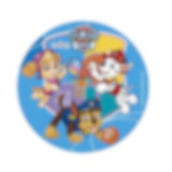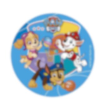 Taartprint van fondant zonder suiker met afbeeldingen van Chase, Marshall en Skye uit Paw Patrol. De taartprint is direct klaar om op de taart te plaatsen en geeft een scherper resultaat dan een ouwelprint. De diameter van de taartprint is ca. 15,5 cm.