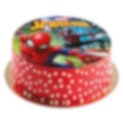 Kleurrijke taartprint van heerlijke suikervrije fondant met een afbeelding van Spiderman. De taartprint is klaar om direct op de taart te plaatsen en heeft een scherpere print dan een ouwelprint. De taartprint heeft een doorsnee van ongeveer 20 cm.