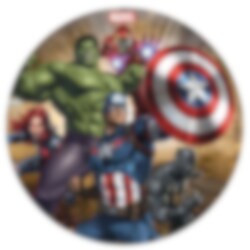 Mooie taartprint van suikervrije fondant met afbeeldingen van de superhelden uit de Avengers. De taartprint is klaar om direct op de taart te plaatsen en heeft een scherpere print dan een taartprint van ouwel. De taartprint heeft een diameter van ongeveer 16 cm.
