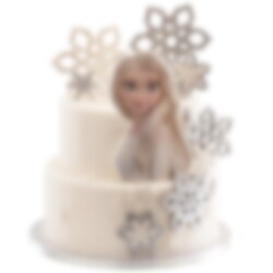 Betoverende taartdecoraties van ouwel met prinses Elsa en afbeeldingen van sneeuwvlokken uit de Disney-film Frozen. Maak je taart extra speciaal en sprookjesachtig met deze prachtige versieringen. De verpakking bevat 7 decoraties in verschillende maten.