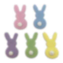 5 suikerdecoraties die paashazen voorstellen in mooie pastelkleuren. Perfect om je gebakjes mee te decoreren. De suikerdecoraties zijn ongeveer 4 x 2 cm groot.