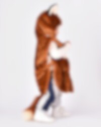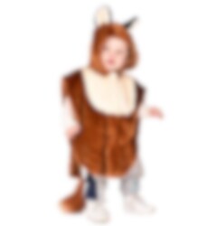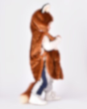 Het vos kostuum bevat een cape in een bruine kleur met leuke details die een schattige vos voorstellen. De cape is gemaakt van 100% polyester, ongeveer 45 cm lang, en geschikt voor kinderen van 1-4 jaar met maat 86-110.