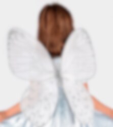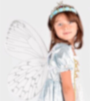 Doe alsof je wegzweeft met deze dromerige vleugels. De vleugels hebben leuke details in zilveren glitters. Makkelijk aan en uit te trekken met de schouderbandjes van satijn bedekt elastiek. Elke vleugel is ongeveer 55 x 22 cm.