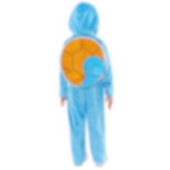 - Inhoud: Blauwe jumpsuit met bijpassende capuchon die het gezicht van Squirtle voorstelt en een zachte schildpadschaal op de rug.