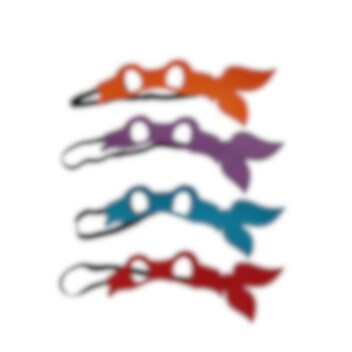 - Inhoud: Jurk van glanzende stof met een schild op de rug en vier verschillende oogmaskers in de kleuren van de verschillende ninja's.