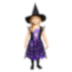 - Inhoud: Een paarse en zwarte jurk met een Peppa Pig-motief in het midden en een bijpassende heksenhoed.