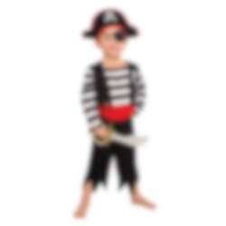 Cool piraten kostuum dat gegarandeerd in de smaak valt bij de kinderen op het piratenfeest. Het kostuum is een jumpsuit met leuke piratendetails in de kleuren rood, zwart en wit. Er zit ook een piratenhoed bij. Verkrijgbaar in twee verschillende maten voor kinderen tussen 3-4 jaar en 4-6 jaar. Het kostuum is gemaakt van 100% polyester. Moet met de hand worden gewassen en aan de lucht worden gedroogd.