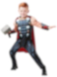 Thor kostuum deluxe bevat een gewatteerde, stijlvolle jumpsuit voor het hele lichaam en een cape. Naast het pak wordt een hamer van Thor in schuimmateriaal meegeleverd. Het kostuum is verkrijgbaar in drie maten die geschikt zijn voor kinderen tussen de 3 en 8 jaar oud. Gemaakt van 100% polyester. Het kostuum moet met de hand worden gewassen met een beetje water en laten afdruipen. Schoenen niet inbegrepen.