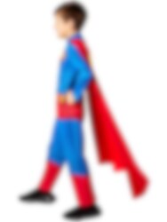 Met dit klassieke Superman-kostuum verandert je kind in de man van staal. Het iconische logo, de kleurrijke opdruk en de rode cape zorgen voor een heldhaftige uitstraling – perfect voor verkleedpartijtjes, Halloween of fantasierijke superheldenavonturen.