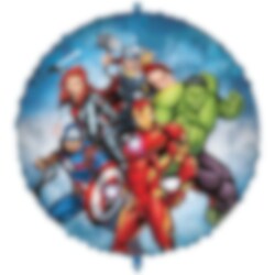 Ronde folieballon in blauw met een dubbelzijdige afbeelding van de Avengers-helden. Leuk om op te blazen en als decoratie te gebruiken op je kinderfeestje.