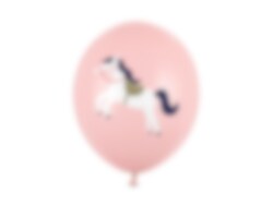 6 ballonnen in lichtroze met een schattige afbeelding van witte paardjes. Een leuke toevoeging voor elk kinderfeestje met een paardenthema.