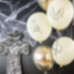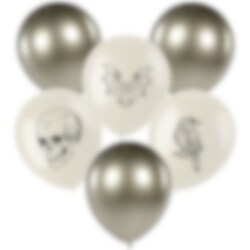 Versier stijlvol voor Halloween met deze prachtige latexballonnen. De set bevat zes ballonnen met verschillende gedrukte afbeeldingen, perfect om de juiste sfeer te creëren. De ballonnen kunnen gevuld worden met helium of lucht en zijn geschikt voor zowel binnen als buiten.