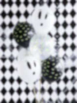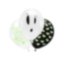 Deze set van drie latexballonnen is perfect voor een halloweenfeest en zorgt voor een extra effect wanneer het licht uitgaat. De ballonnen hebben verschillende prints, waaronder vleermuizen en spoken, die oplichten in het donker nadat ze aan licht zijn blootgesteld. Een leuke en sfeervolle decoratie die zeker de aandacht van zowel kinderen als volwassenen trekt.