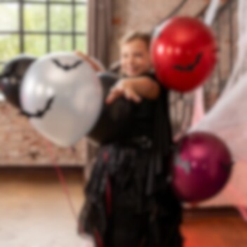 Geef je halloweenversiering een extra dimensie met deze ballonnen en vliegende vleermuizen in 3D. Een leuke DIY-decoratie die zorgt voor een feestelijke en mysterieuze sfeer. De set bevat zes ballonnen in donkere, metallic kleuren en acht vleermuizen met lijmprikkers die je eenvoudig op de ballonnen bevestigt voor een opvallend effect.