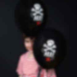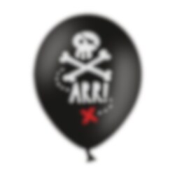 6 zwarte ballonnen met motieven uit het thema Piratenfeest. Perfecte ballonnen om op te hangen voor het kinderfeestje met een piraten thema. De ballonnen worden ongeveer 30 cm.