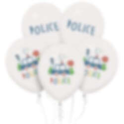 6 stuks witte latexballonnen met afbeeldingen van politieauto's en de tekst "Politie".
