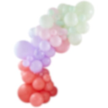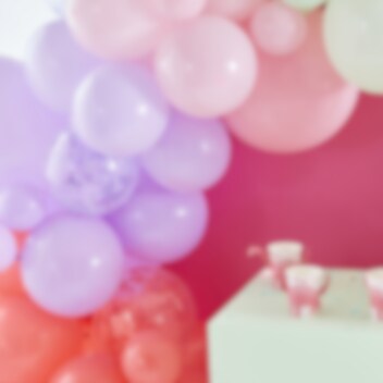 Luxe ballonnenboog in roze, paarse en groene tinten die je zelf bouwt. Een werkelijk prachtige decoratie die past bij het kinderfeestje met een roze dino thema. Het pakket bevat in totaal 75 stuks ballonnen in verschillende maten en accessoires. De ballonnenboog is ongeveer 5 meter lang.