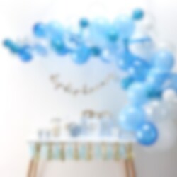 Indrukwekkende ballonnenboog in blauwe tinten die je zelf bouwt. Een schattige decoratie die geschikt is voor kinderfeestjes, feestjes of bruiloften. De verpakking bevat in totaal 70 stuks ballonnen in verschillende maten en accessoires. De ballonnenboog is ongeveer 4 meter lang.
