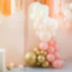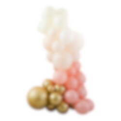 Indrukwekkende ballonnenboog in perzik- en goud tinten die je zelf bouwt. Een echt luxe decoratie die geschikt is voor kinderfeestjes, feestjes of bruiloften. De verpakking bevat in totaal 75 stuks ballonnen in verschillende maten en accessoires. De ballonnenboog is ongeveer 4 meter lang.