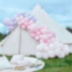 Prachtige ballonnenboog in roze en lavendel tinten die je zelf bouwt. Een werkelijk indrukwekkende decoratie die geschikt is voor kinderfeestjes, feestjes of bruiloften. Het pakket bevat een volledige 200 stuks ballonnen in verschillende maten en accessoires. De ballonnenboog is ongeveer 12 meter lang.