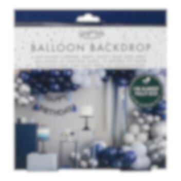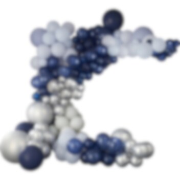 Prachtige ballonnenboog in zilver-, blauw- en donkerblauw tinten die je zelf bouwt. Een werkelijk indrukwekkende decoratie die geschikt is voor kinderfeestjes, feestjes of bruiloften. Het pakket bevat een volledige 200 stuks ballonnen in verschillende maten en accessoires. De ballonnenboog is ongeveer 12 meter lang.