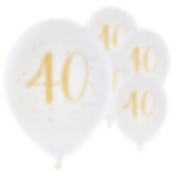 8 witte ballonnen met een 40-jarige opdruk en gouden sterren. De ballonnen zijn decoratief en passen goed bij veel andere decoraties en tafelaccessoires voor je 40ste verjaardag.
