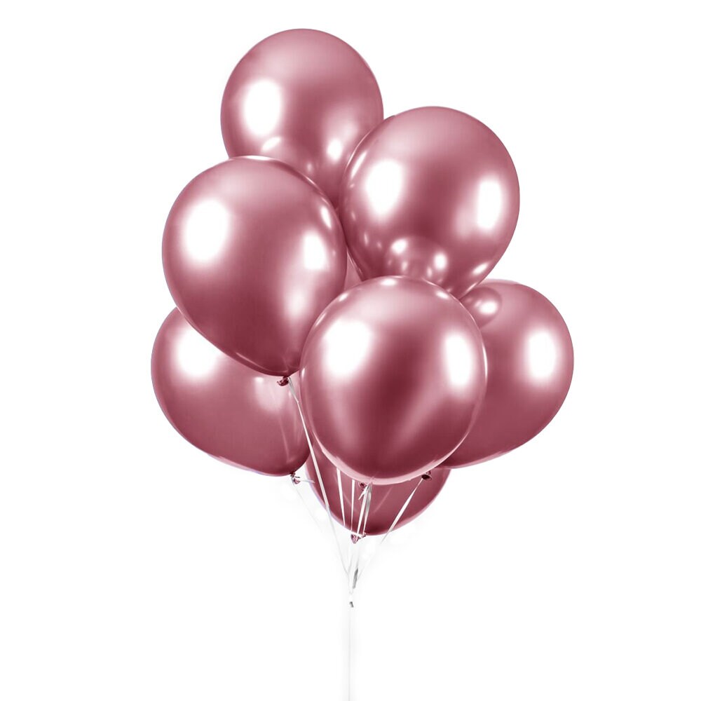 10 spiegelglanzende chromen ballonnen in een prachtige roze kleur die perfect zijn voor het versieren van zowel kinderfeestjes als andere festiviteiten.