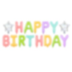 Cool ballonslinger met 13 letters in leuke kleuren die de woorden "Happy Birthday" vormen. De letters worden op een transparant draad gestoken en aan de muur of aan het plafond gehangen. De ballonnen zijn gevuld met normale lucht en de gemakkelijkste manier is om een ballonpomp te gebruiken.